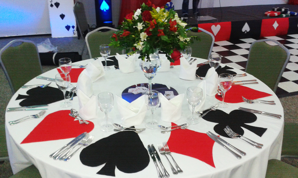 FESTA CASSINO Transformamos a plenária da Convenção Chiesi em um grande Cassino. A decoração das mesas com sousplat de nipes, moedas e cartas gigantes, davam o clima de uma Noite em Vegas.